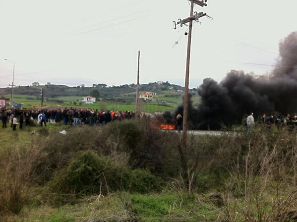 Residents quickly gathered at the entrance of the village. The riot police marched into the village, throwing large quantities of tear gas (video 1, video 2, video 3). Multiple eyewitnesses, including the headmaster, report that tear gas was thrown inside the secondary school, which had to be evacuated. One student was wounded after taking a hot from a tear gas canister. Several people are reported to be suffering from breathing problems and need medical care.